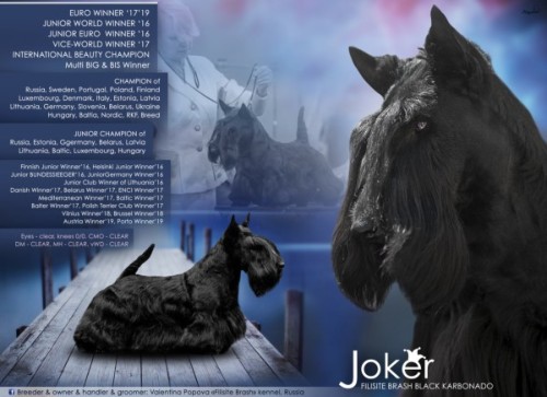 Int.CH , Club.Ch , Terrier-Union Ch , Blr.Ch , Lt.Ch , Penjetta Highland Ghillie |