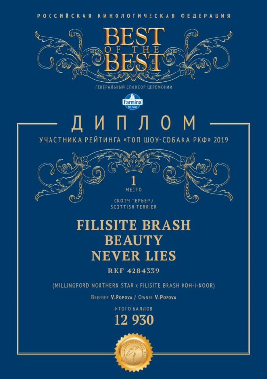 # 1 ТОП СОБАКА 2019 - Filisite Brash BEAUTY NEVER LIES